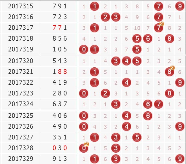 胆码分析:上期开奖号913,下期关注数字7,防数字0、5。