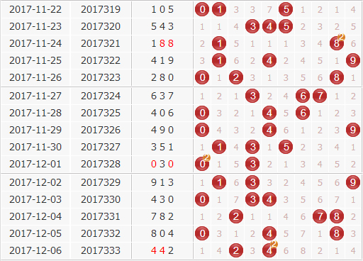 胆码分析:上期开奖号442,下期关注数字7,防数字3 8。