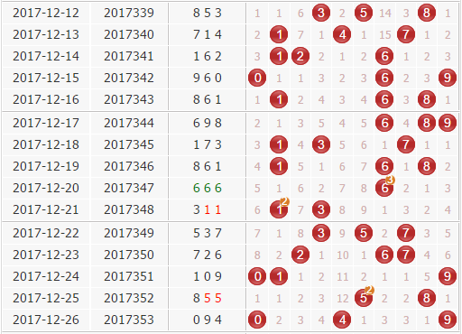 17354期胆码推荐:015 开出1-3个,金胆:5 银胆:1