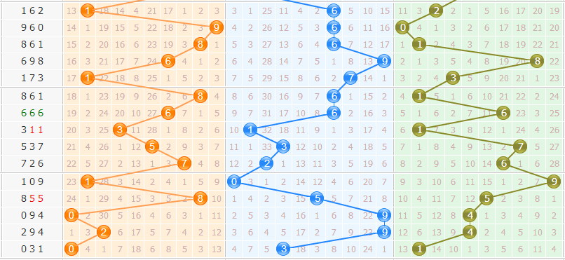 结合组选012路分布图,012路上期开出2:1:0,1路号码连开三期,本期看好012路比2:0:1、1:2:0、1:0:2路。