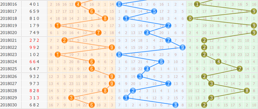 上期开出682,组六形态,奇偶比0:3,大小比2:1,和值16,022路组合,跨度6。