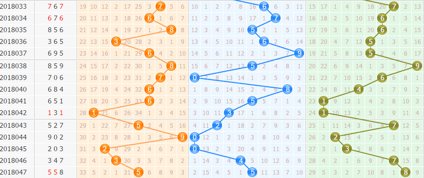 跨度分析:上期跨度3,属于小跨度开出,分析近期各区出号走势,本期跨度值看好小跨度值,重点关注4跨防7跨。