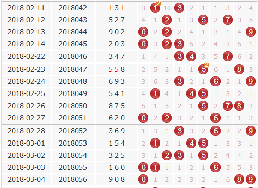组选分析:在组选分布图上,小号0-2上期开出1枚,本期防0-1枚;中部号码3-6上期断开,本期关注1-2枚;大号7-9上期开出2枚,本期防0-1枚;结合组选复隔中分布图,上期开出组选复中中形态,本期关注复隔码最少开出1-2枚。本期出号条件:复隔码01689=1-2枚,中码23457=1-2枚。