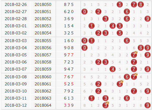 18065期胆码推荐:237 开出1-2个,金胆:2 银胆:3
