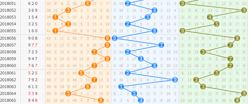 跨度分析:上期跨度6,属于大跨度开出,分析近期各区出号走势,本期跨度值看好小跨度值,重点关注4跨防8跨。