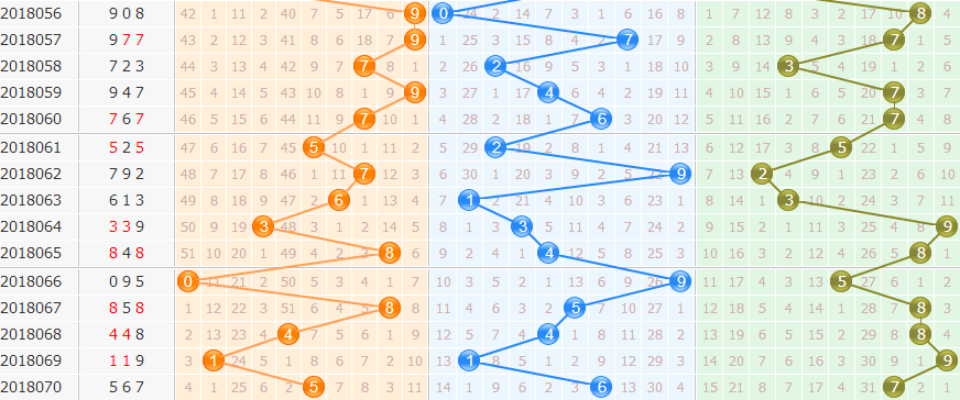 和值:上期开出和值18,本期看和值走势波动小幅度,优先关注大数尾。推荐和尾5、8防2