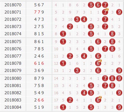 福彩3D第2018084期开奖号码519,210路组合,邻码开出,和值上升,2018085期预测分析如下: