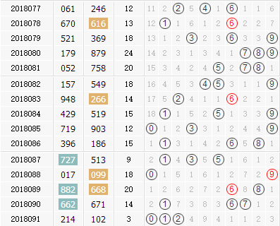 和值:088-090期和值开出18、20、14,三期和值的上期遗漏分别是5-7-6期,091期开奖冷态和值3强势反弹,下一期开奖和值会快速回归1字头区间。