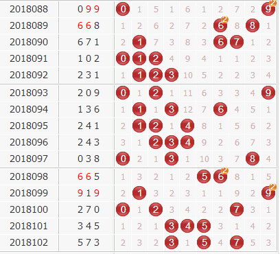 012路分析:100-102期012路数值均衡出号,具体是100期个位0、十位7、百位2;101期百位3、十位4、个位5,102期个位3、十位7、百位5,18103期看好0路数值增温。