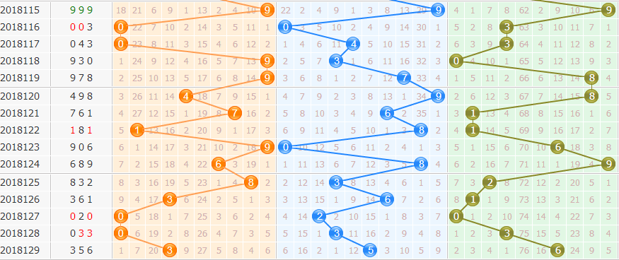 和值:上期开出和值14,本期看和值走势波动小幅度,优先关注小数尾。推荐和尾0、3防6