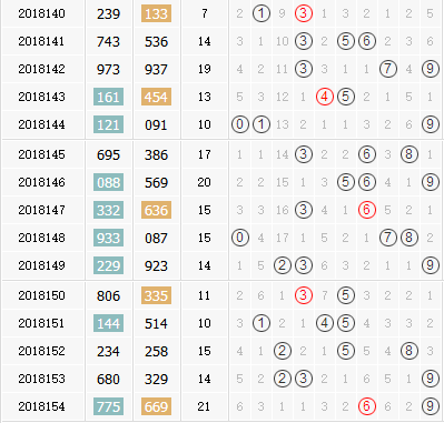 福彩3D第2018154期开奖号为:669,和值为21点,大小形态为大大大,奇偶形态为偶偶奇,跨度值为3。2018155期3d试机号前预测分析: