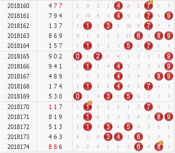 跨度分析:上期开出跨度2,下期看好跨度3 7。