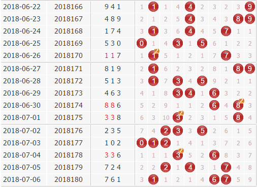 热温冷:下期看好开出热号0、1、8,温号不看好开出,冷号可防4。