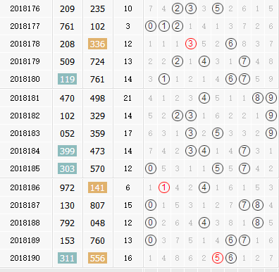 组选分析:在组选分布图上,小号0-2上期断开,本期防1-2枚;中部号码3-6上期开出3枚,本期关注1-2枚;大号7-9上期断开,本期关注0-1枚;结合组选复隔中分布图,上期开出组选复中中形态,本期关注中码最少开出1-2枚。本期出号条件:复隔码0567=1-2枚,中码123489=1-2枚。