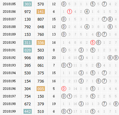 福彩3D第2018199期开奖号为:510,和值为6点,大小形态为大小小,奇偶形态为奇奇偶,跨度值为5。2018200期3d试机号前预测分析: