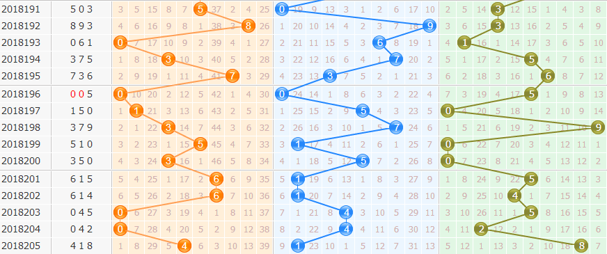 十位:近期十位上的跨度走势(3-5-2-6-4-4-0-3-0-3),根据跨度公式推算,本期留意跨幅大跨隔期开出,防小跨连续出号,推荐小跨2、4防大跨5。推荐号码3、5、6