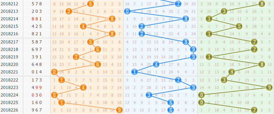 和值:上期开出和值22,本期看和值走势波动小幅度,优先关注大数尾。推荐和尾1、2防8