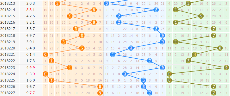 【012路分析】:上期开出011路组合。本期严防2路码热出,留意212路形态开出。