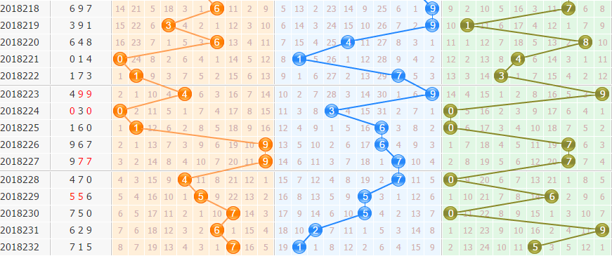 个位:近期个位上的跨度走势(6-9-0-7-0-7-6-6-9-4),根据跨度公式推算,本期留意跨幅大跨隔期开出,防小跨连续开出,重点推荐小跨2、3防大跨5。推荐号码0、7、8
