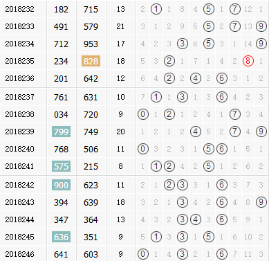 组选分析:在组选分布图上,小号0-2上期开出1枚,本期防1-2枚;中部号码3-6上期开出2枚,本期关注1-2枚;大号7-9上期断开,本期关注0-1枚;结合组选复隔中分布图,上期开出组选复隔中形态,本期关复隔码最少开出1-2枚。本期出号条件:复隔码01356=1-2枚,中码24789=1-2枚。