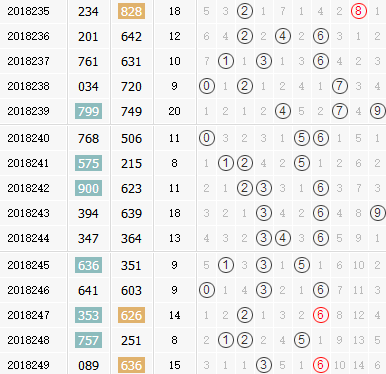 福彩3D第2018249期开奖号码为:636,形态组三,大小大,偶奇偶组合,和值为15,跨度为3。上期销量47,014,968元,直选中15,130注,组选中14,806注,2018250期福彩3D分析: