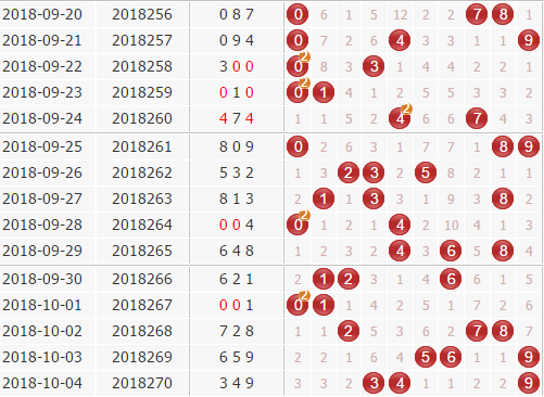 胆码分析:上期开奖号349,下期关注数字0,防数字5、7。