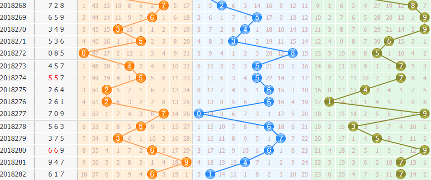 【012路分析】:上期开出011路组合。本期严防2路码热出,留意120路形态开出。