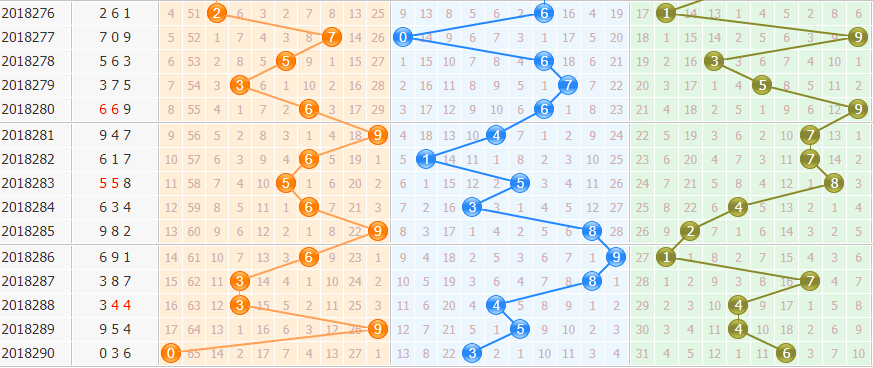 上期开出036,组六形态,奇偶比1:2,大小比1:2,和值09,000路组合,跨度6。