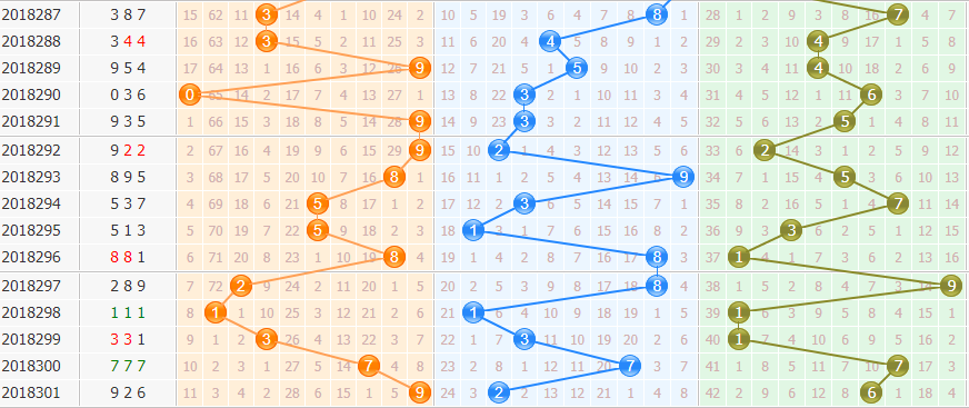 【012路分析】:上期开出020路组合。本期严防2路码热出,留意222路形态开出。