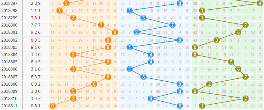 上期开出081,组六形态,奇偶比1:2,大小比1:2,和值09,021路组合,跨度8。
