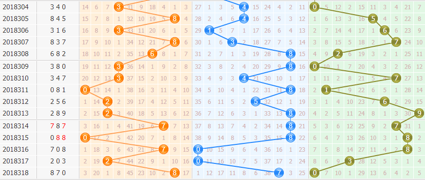 上期开出870,组六形态,奇偶比1:2,大小比2:1,和值15,210路组合,跨度8。