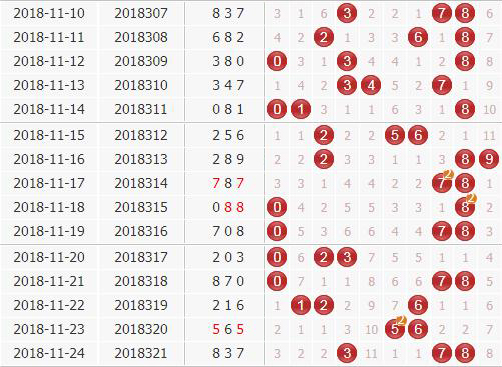 胆码分析:上期开奖号837,下期关注数字6,防数字1、3。