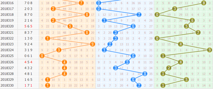 012路走势:上期开出111路,本期关注210路或021路开出。