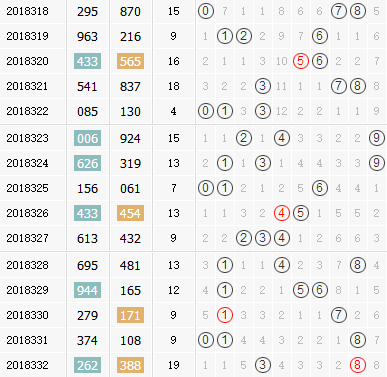福彩3D第2018332期开奖号为:388,和值为19点,大小形态为小大大,奇偶形态为奇偶偶,跨度值为5。