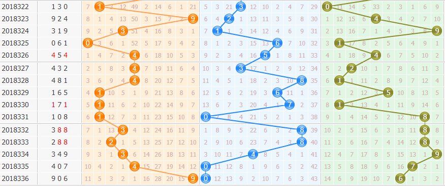 百位:近期百位上的跨度走势(0-0-3-0-0-2-1-1-1-5),根据跨度公式推算,本期留意跨幅小跨隔期开出,注意大跨连续开出,主看小跨2、3防大跨6。推荐号码3、6、7
