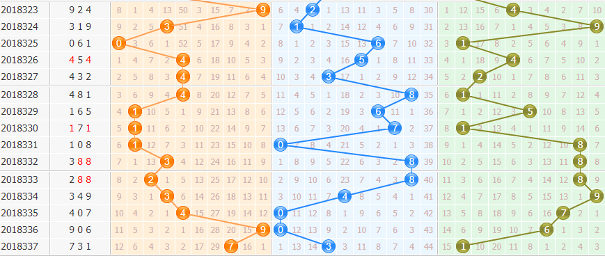 奇偶比:上期开出三奇组合,本期首选一偶二奇组合,次看二偶一奇组合开出。