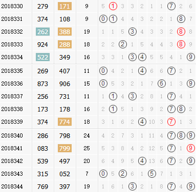 百位:上期出号3,百位2路号码近期短缺,奇数号码近期占优,本期百位关注号码24579;