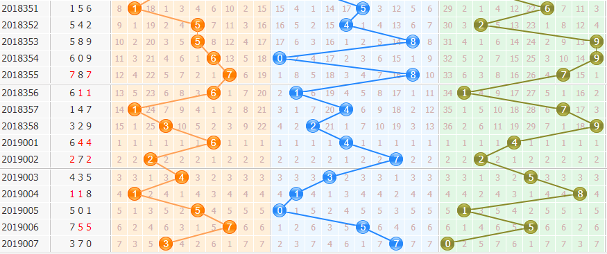 上期开出370,组六形态,奇偶比2:1,大小比1:2,和值10,010路组合,跨度7。