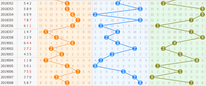 回顾:上期奖号587,大大大,奇偶奇,组六形态,和值20,跨度3