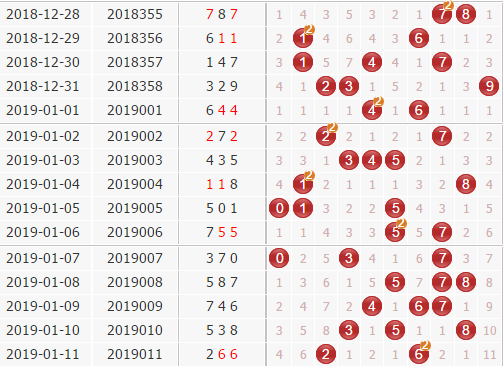 胆码分析:上期开奖号266,下期关注数字4,防数字6、9。