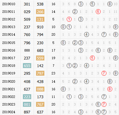 福彩3D第2019024期开奖号为:637,和值为16点,大小形态为大小大,奇偶形态为偶奇奇,跨度值4。2019025期3d试机号前预测分析: