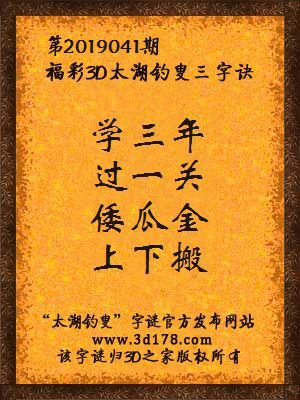 福彩第2019041期3d太湖字谜:学三年,过一关,倭瓜金,上下搬