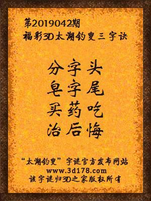 下面开始解3d第2019042期太湖字谜: