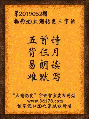 福彩第2019052期3d太湖字谜:五首诗,背仨月,易朗读,难默写