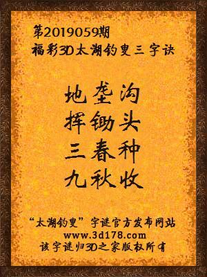 福彩第2019059期3d太湖字谜:地垄沟,挥锄头,三春种,九秋收