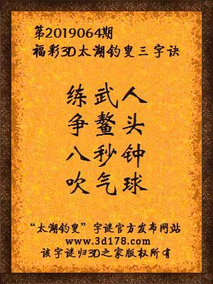 今日3d太湖字谜总汇,3d之家为您详细解答2019064期3d太湖字谜,并汇总多位专家精解太湖字谜供参考。