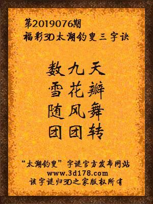 福彩第2019076期3d太湖字谜:数九天,雪花瓣,随风舞,团团转