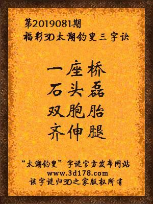 下面开始解3d第2019081期太湖字谜: