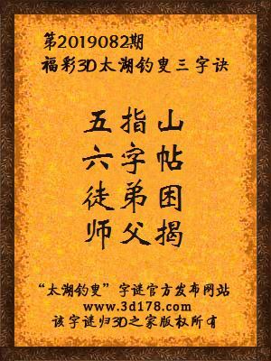 福彩第2019082期3d太湖字谜:五指山,六字帖,徒弟困,师父揭