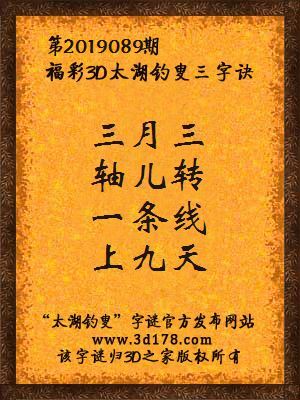 福彩第2019089期3d太湖字谜:三月三,轴儿转,一条线,上九天